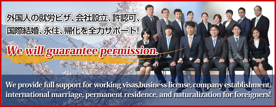 Samurai Immigration Law Firm has expanded to have one of the largest numbers of branches (4) in Japan as an immigration law firm that specializes in foreigners’ visa applications. Since we began service, our support for visa applications has received favorable evaluations from many people, and we have already become the standard law firm for clients who have quickly obtained permission!