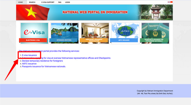 - 1. ベトナム公安省出入国管理局が運営する専用サイトにアクセスします。(https://evisa.xuatnhapcanh.gov.vn/)