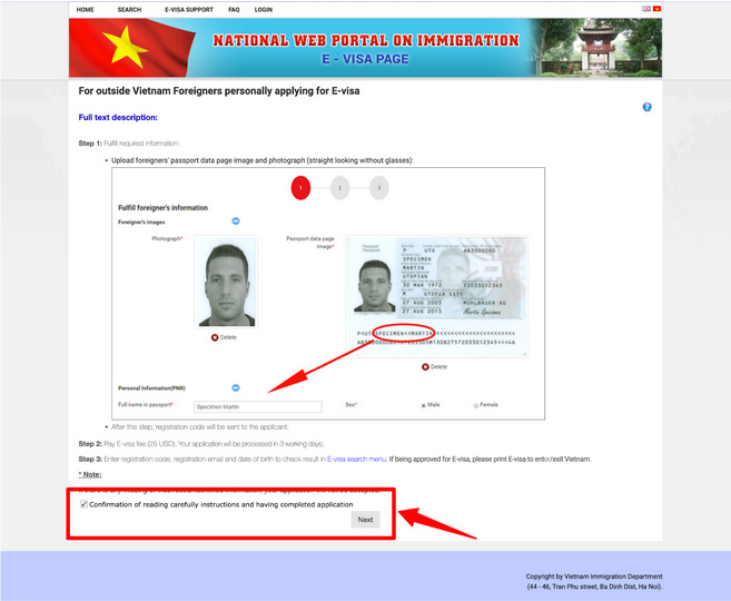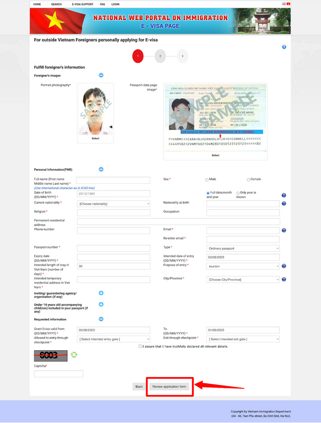 参照:ベトナム入国管理局(National Web Portal on Immigration)|e-Visa 申請公式ページ