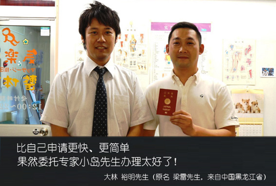 不仅仅是签证上的咨询,委托小岛先生办理归化真是太好了。像现在这样拿到日本护照真是太好了!还能到处去旅游。很期待接下来的生活。今后有什么法律上的问题还会来贵公司咨询。
